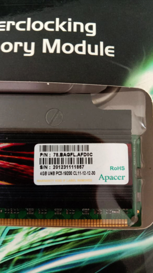 Item(s): Apacer 8GB Kit (2 X 4GB) PC3-19200 DDR3-2400MHz non-ECC Unbuffered CL11 (11-12-12-30)