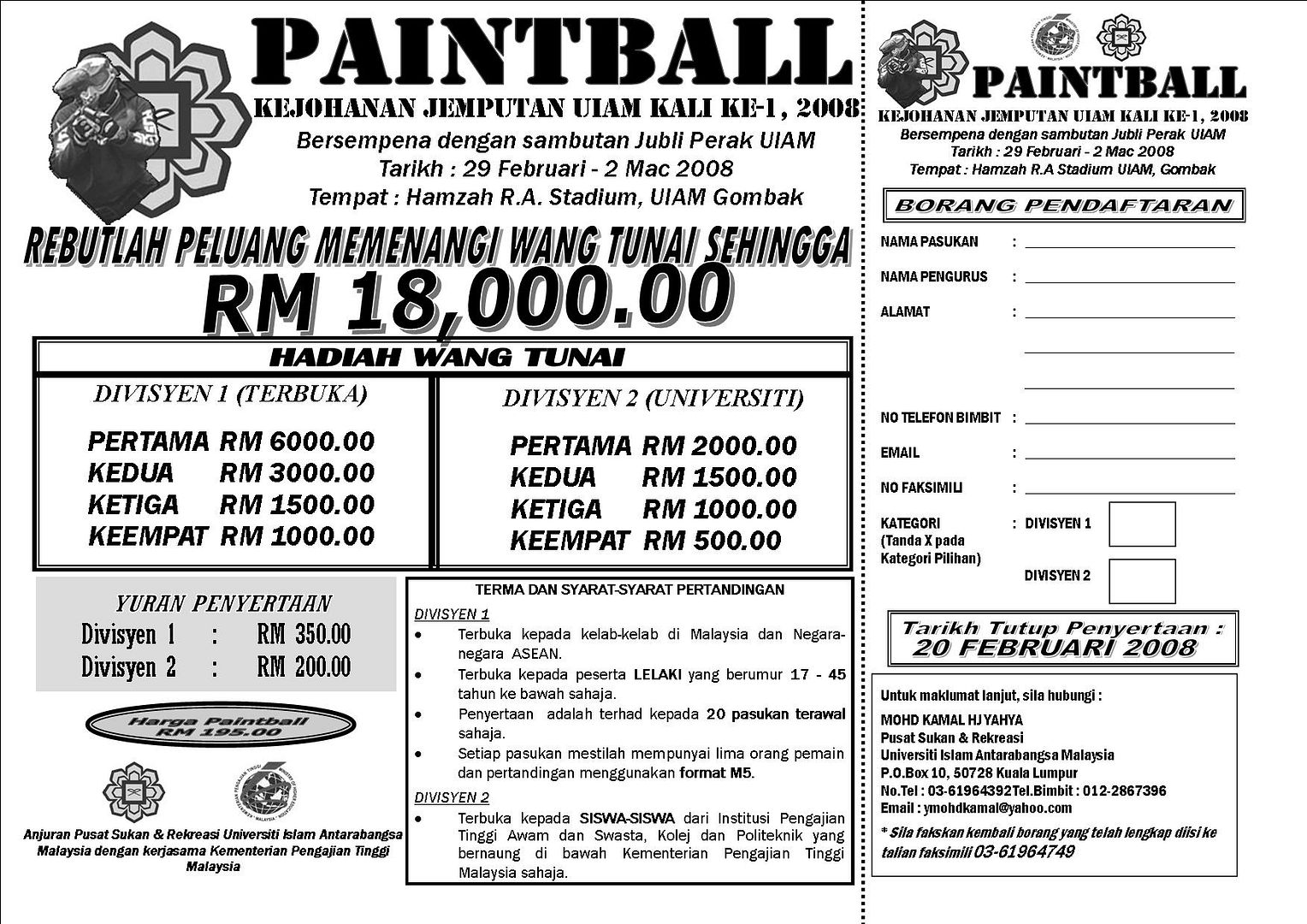 Universiti Islam Antarabangsa Malaysia (UIAM) International Islamic University Malaysia (IIUM) Jalan Gombak, 53100, Kuala Lumpur, Malaysia Event Location: HAMZAH R.A STADIUM, UIAM GOMBAK Map Location to UIAM ![]() UIAM Tourney Site ![]() Swimming will be available to all who crash out early so bring your swim suits..hahaha..RM4 per entry.Very cheap lah.. ![]() Added on March 6, 2008, 1:10 amRegistration Form ![]() hi-res registration form link: http://i32.photobucket.com/albums/d29/pals...nament-UIAM.jpg This post has been edited by allanphang.com: Mar 6 2008, 01:10 AM |