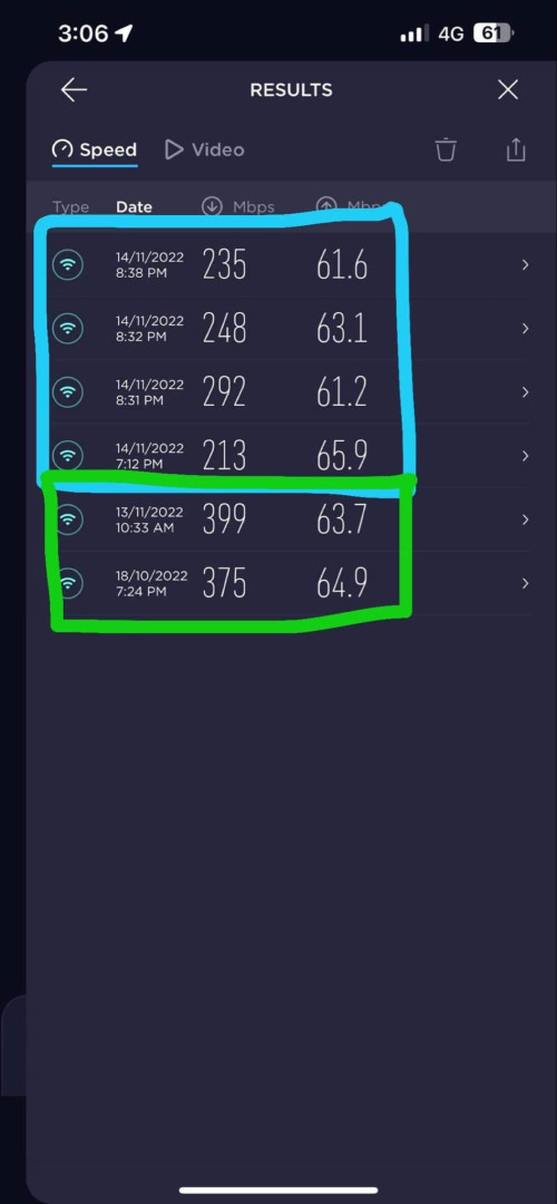 When I use Maxis wifi 6 router, the speed result is almost 400mbps