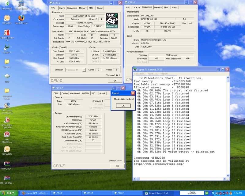 QUOTE(ah_khoo @ Mar 13 2008, 09:53 AM) try to play w d ram speed bro... u can get better result even w lower cpu clock... [attachmentid=416293] will try my best later...but need learn more.. » Click to show Spoiler - click again to hide... « QUOTE(xixo_12 @ Mar 13 2008, 09:54 AM) latest news from AMD  incrementing the 1mhz in HTT bring this new super PI result :23.047s with tighten up the 5-5-4-3-2T with 2.55V in bios PIC1 [attachmentid=416291] i'm not the person that can wait for better result  this is the breaking zone session :22.953s  entering the 22s area with 296 x 12 : 3552Mhz PIC2 [attachmentid=416292] FYI, my daily oced system at the 1.6V in bios which have the team with 2.15V 5-5-5-5-11-2T just doing the increment in HTT and the result pop-up as above  no vcore added from daily rig (293 x 12) to the SPI test (296 x 12) just the Vdimm~~~~~~~~~~ :cheer: nice... This post has been edited by mr_habuk: Mar 13 2008, 11:26 AM