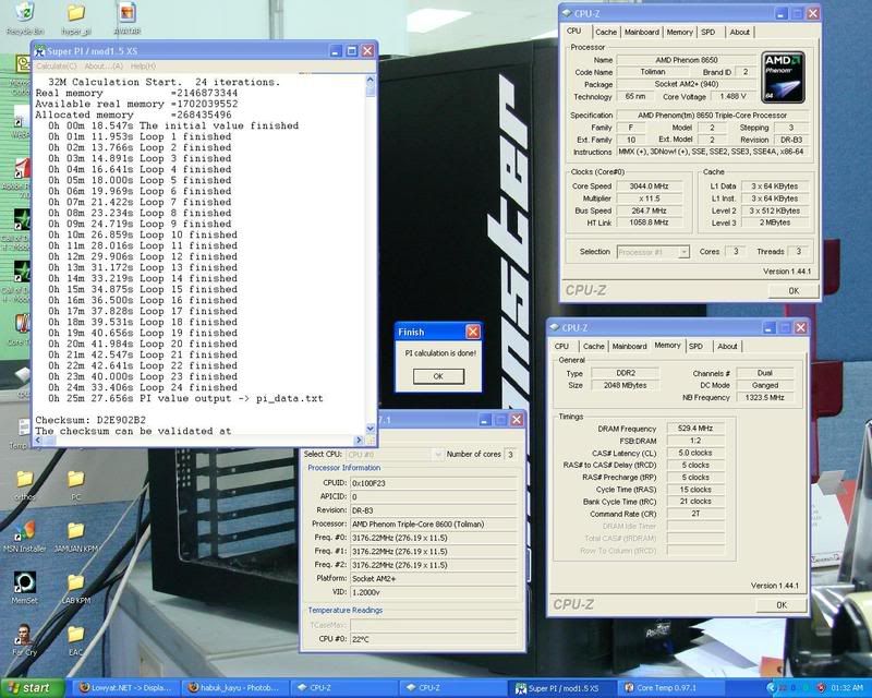 QUOTE(mr_habuk @ Apr 28 2008, 02:43 PM) ![]() guess it don't have much different since PI calculate 1 core oni.. ![]() 32M succesfull...but still didn't try to lower down the vcore..vdimm.. No point to buy am2+ proc and mobo in this way Don't blindly apply am2 oc method to am2+ oc Observe and think before you apply, oc wise |