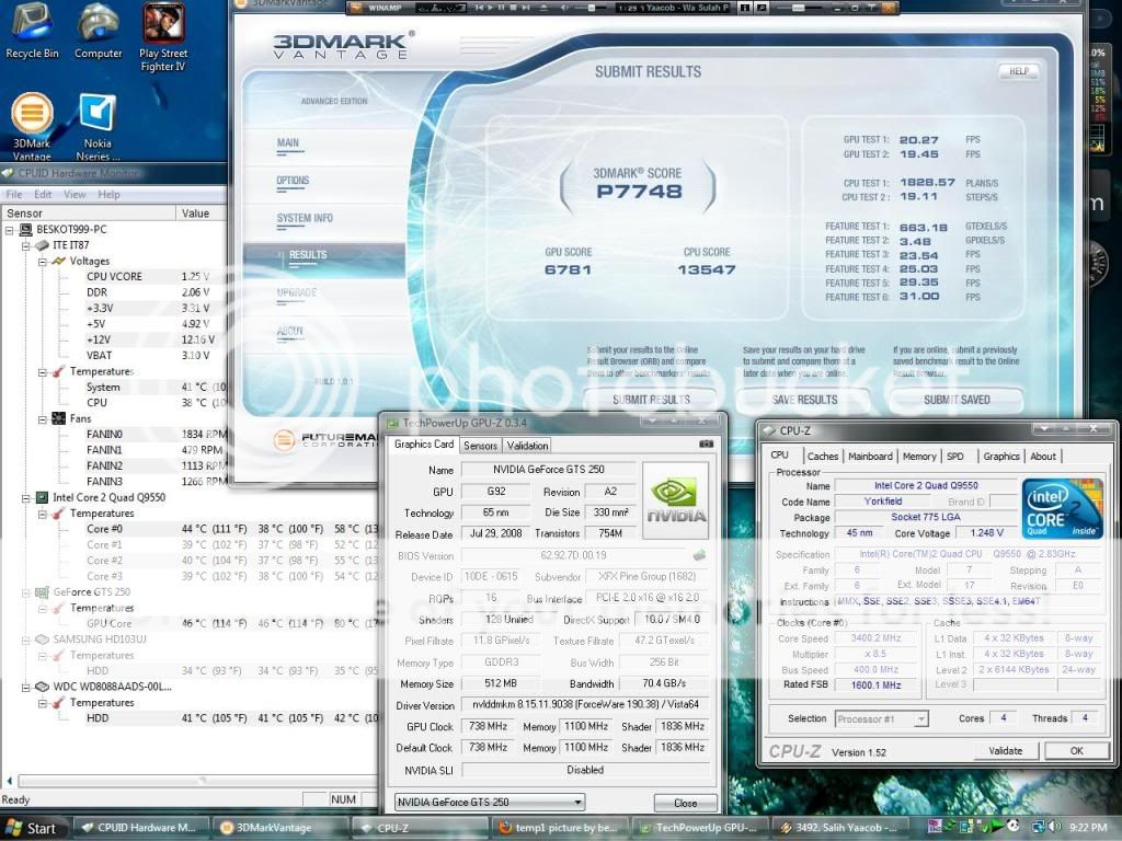 P7748 | beskot999 | GTS250 | XFX GTS250 512mb(736/1100/1836) ForceWare 190.38 | C2Q Q9550 @3.40Ghz