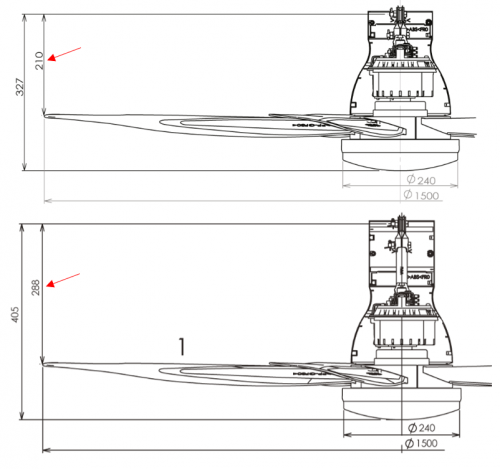 Anyone has experience with short and long pipe fans? I roughly measured the fans at home now are the "long pipes" dimension, its the KDK metal blades. It does show some shadows on the upper side of the walls. There's one unit of Sensa 4 short pipe, which doesn't have the shadow on the upper side of the walls (its the same room size).