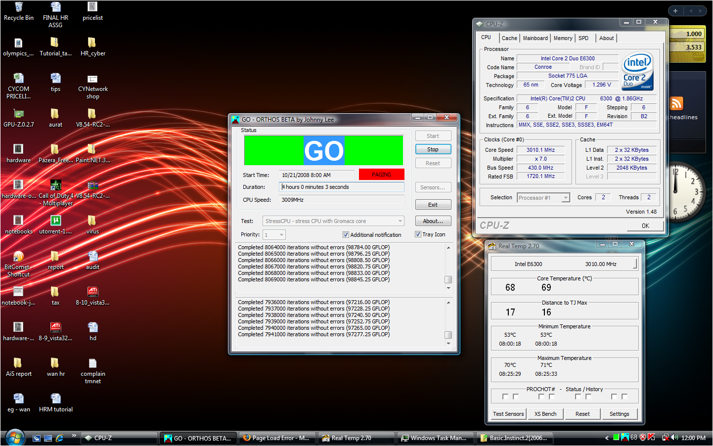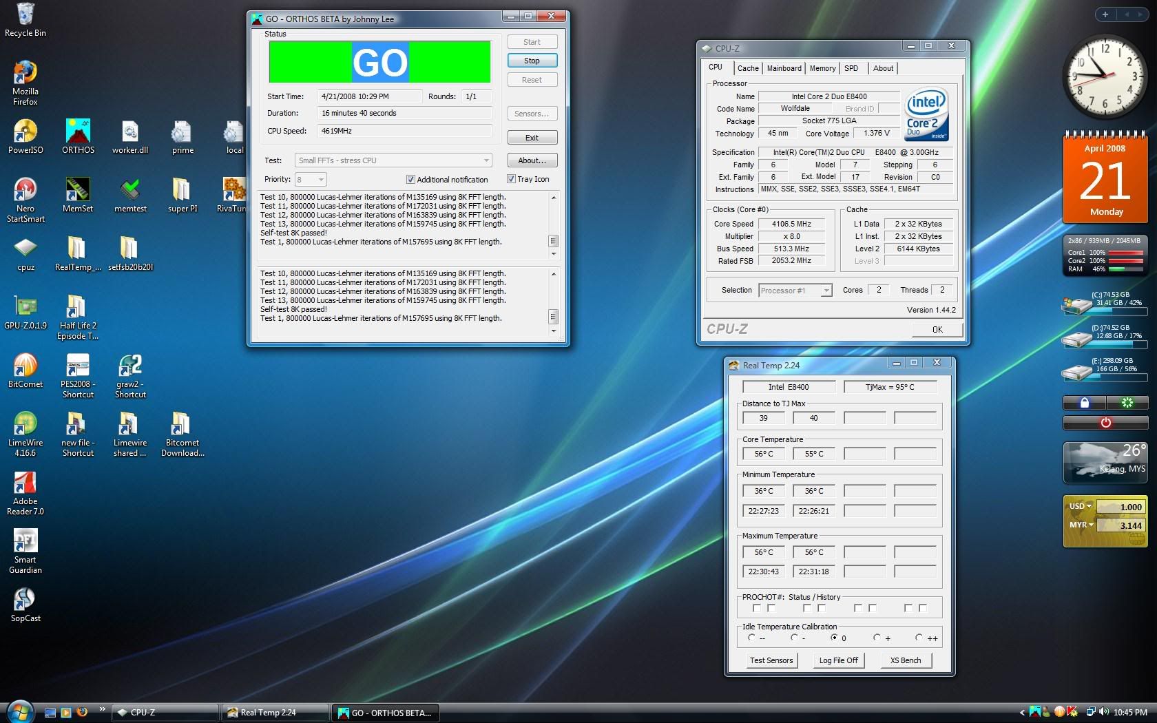 tkh_1001/ Xigmatek S1283 Red Scorpion/ Tuniq Tx2/ Intel C2Q Q9450 @ 3.44ghz(29% overclock)/ 1.35v/ stock fan/ 42c/ 60c/ aircond