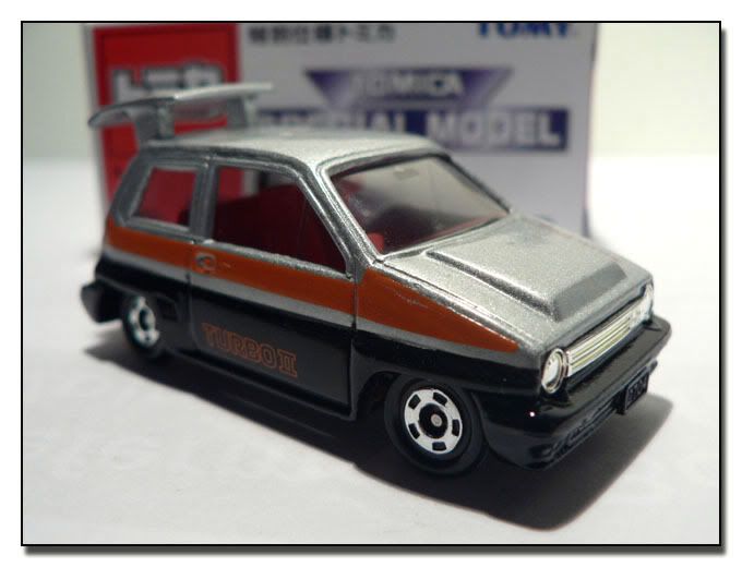 » Click to show Spoiler - click again to hide... « Anymore parking space for one more Honda SM-10 Honda City Turbo II ![]() I think most of us know that one of the nicest feature of Tomica Regular Box is that usually it includes some form of moving/opening part like: the doors (opening, casement, sliding, collapsible), bonnet & boot, extensible ladders, leg stands, opening/sliding compartments, satellite dish and so on etc. You can find the special function written on the bottom right of the box (see blue dot in Harrier example) ![]() Translated: here it probably means a rear opening boot (6 golf sets anyone?) The one below gets pop-up headlamps SM-16 Lotus Espirit ![]() ![]() This post has been edited by Percivale: Oct 12 2008, 12:31 PM |