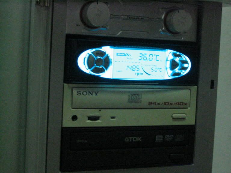 QUOTE(mystvearn @ Oct 3 2004, 04:47 PM) sukhoi, how did you make the front light shine like that? mine shine like its a straight line. Now as advertize on the Tt site. the two blue led lights at the door. what Tt on my machine: i just put some transparent film to soften the light. it'd be nicer to look at.